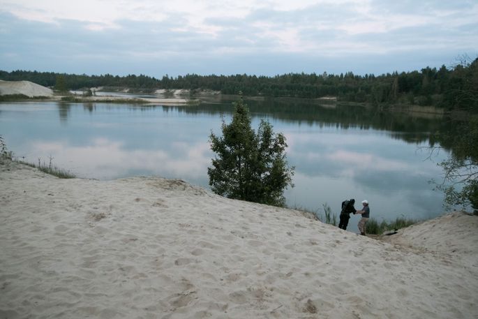 Piirkonnas pole mingit asustust, on väikesed ja veel väiksemad kruusa-ja liivateed, kus tavaline sõiduauto kergesti kinni võib jääda. Rohelisel maastikuautol kõrgele tõstetud kere ja hiiglaslike ratastega polnud aga mingeid raskusi paksust pehmest liivast läbimurdmisega. Nii sõitis seltskond ka ühe väiksema karjääri kõrgele kaldanõlvale.